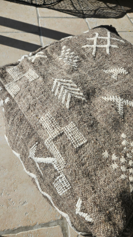 Pouf Kilim couleur taupe motif ethnique - Pouf de sol - Pouf Marocain