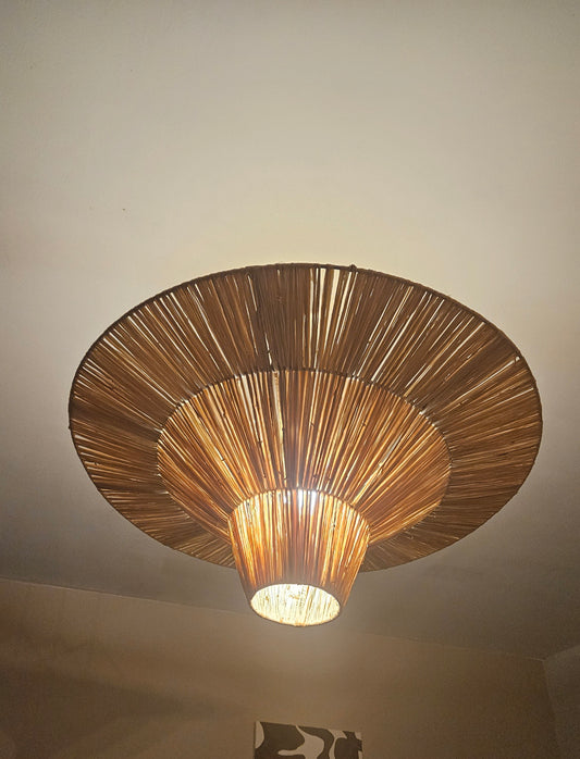 Suspensions raphia à trois niveau - Plafonnier tamisé marocain