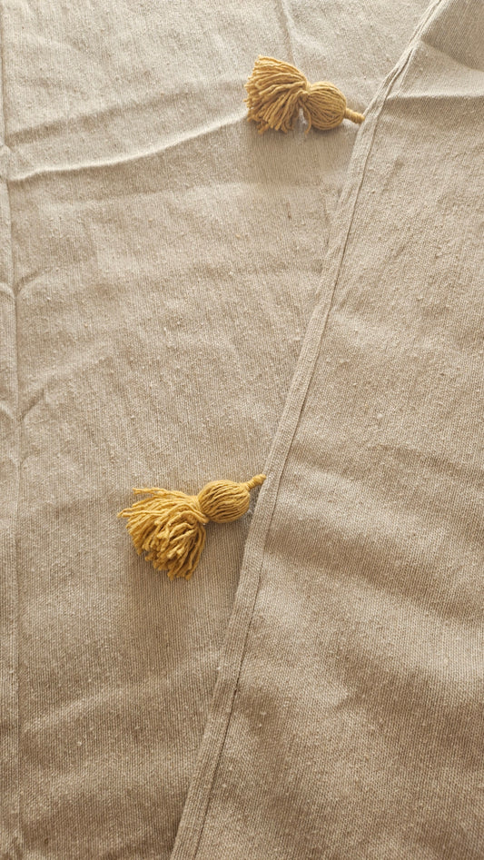 Plaid à pompons marocain beige et jaune - Jeté de canapé Berbère