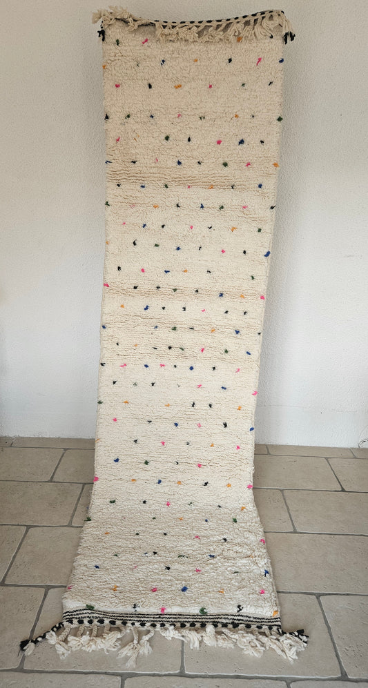 Tapis de couloir Beni Ouarain motif pois colorés - Tapis Berbère multicolore