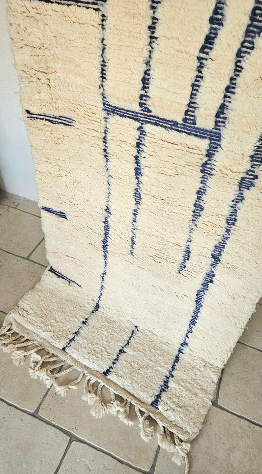 Tapis de couloir Berbère Ecru & Bleu dans la trame