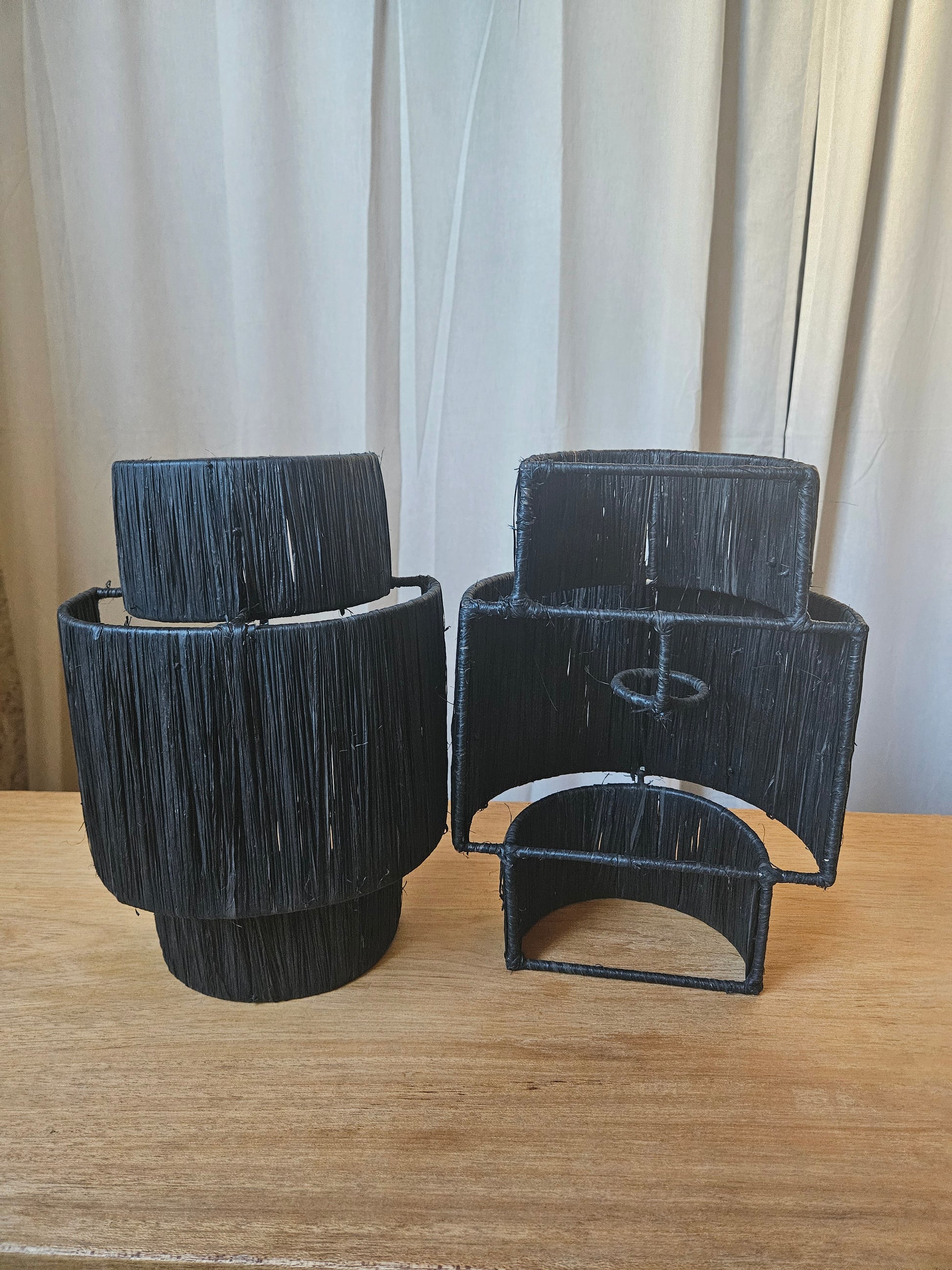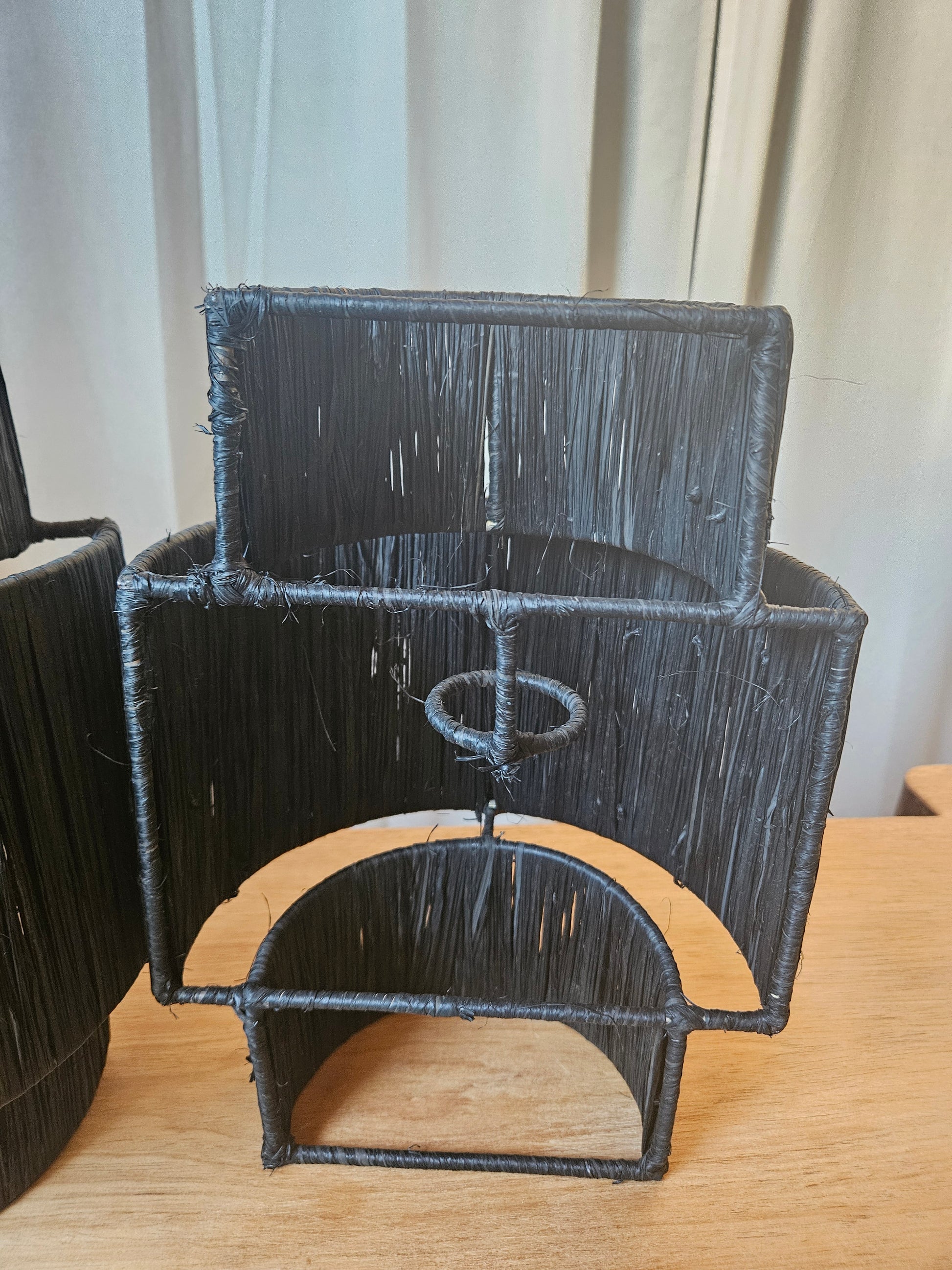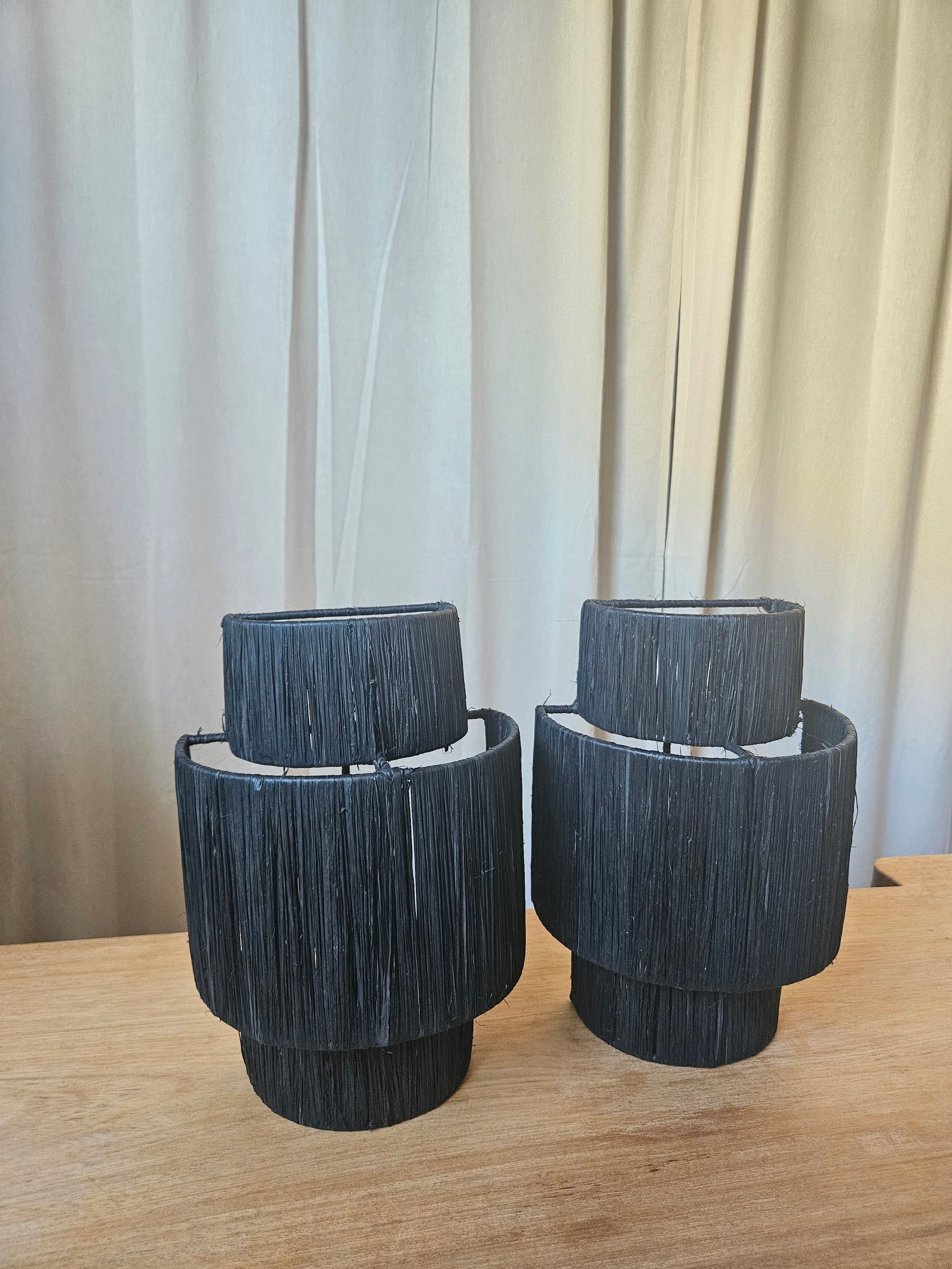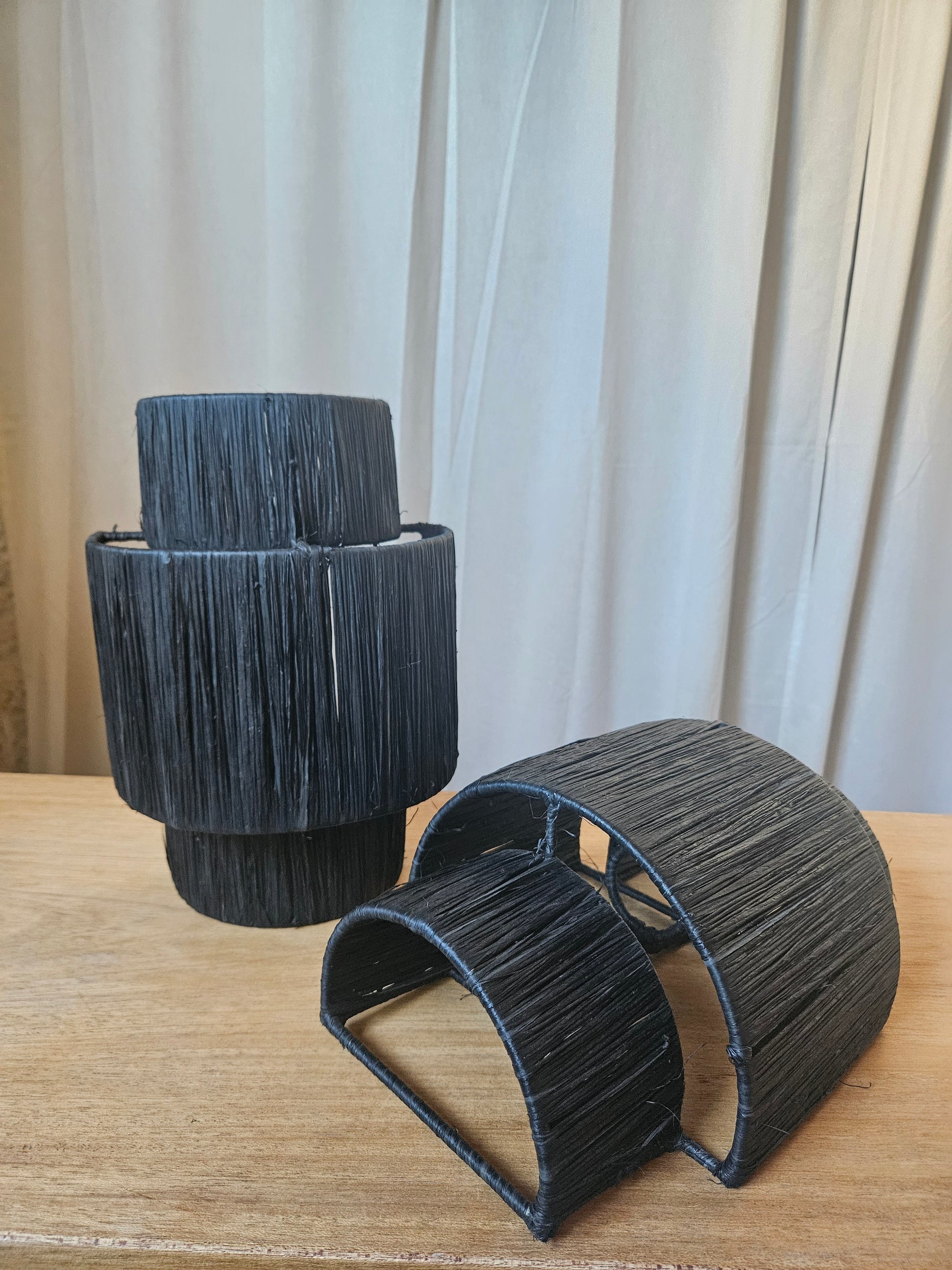 Applique murale en raphia noire, décoration murale - Abat jour muraux