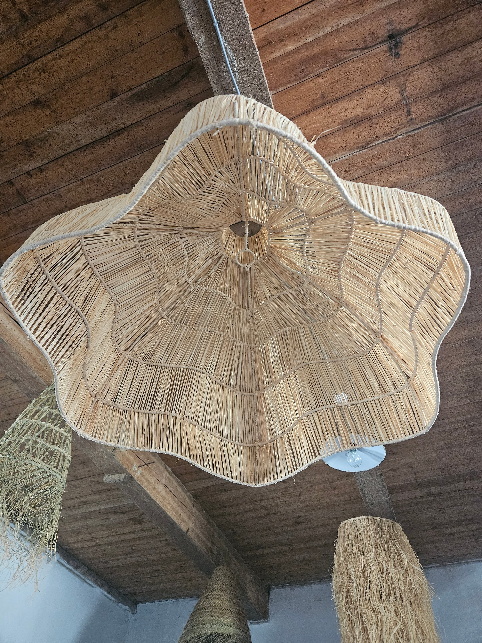 Magnifique suspension fleur bohème structure en fer forgé et raphia tissage plat, fabrication à la main par artisan 👋