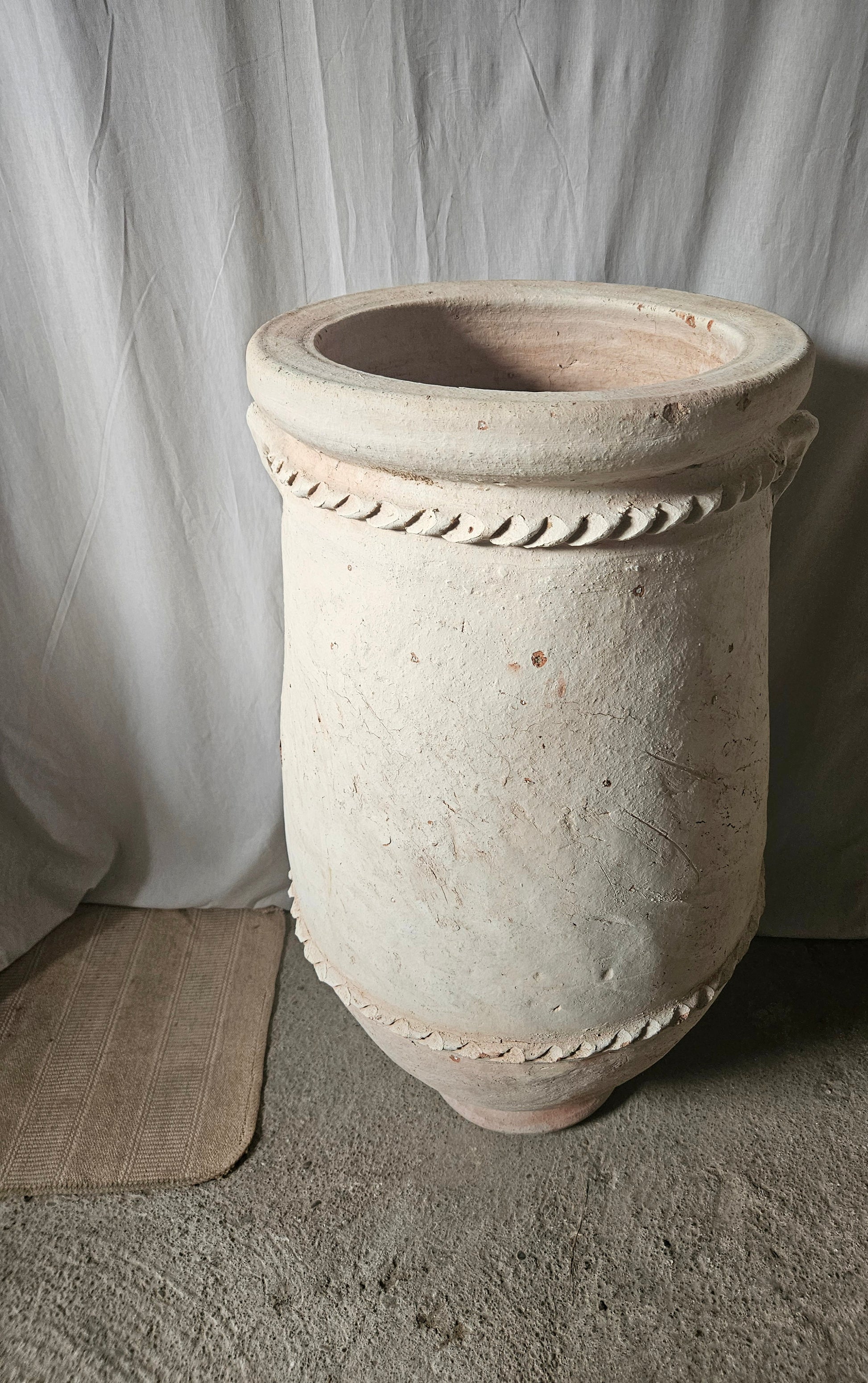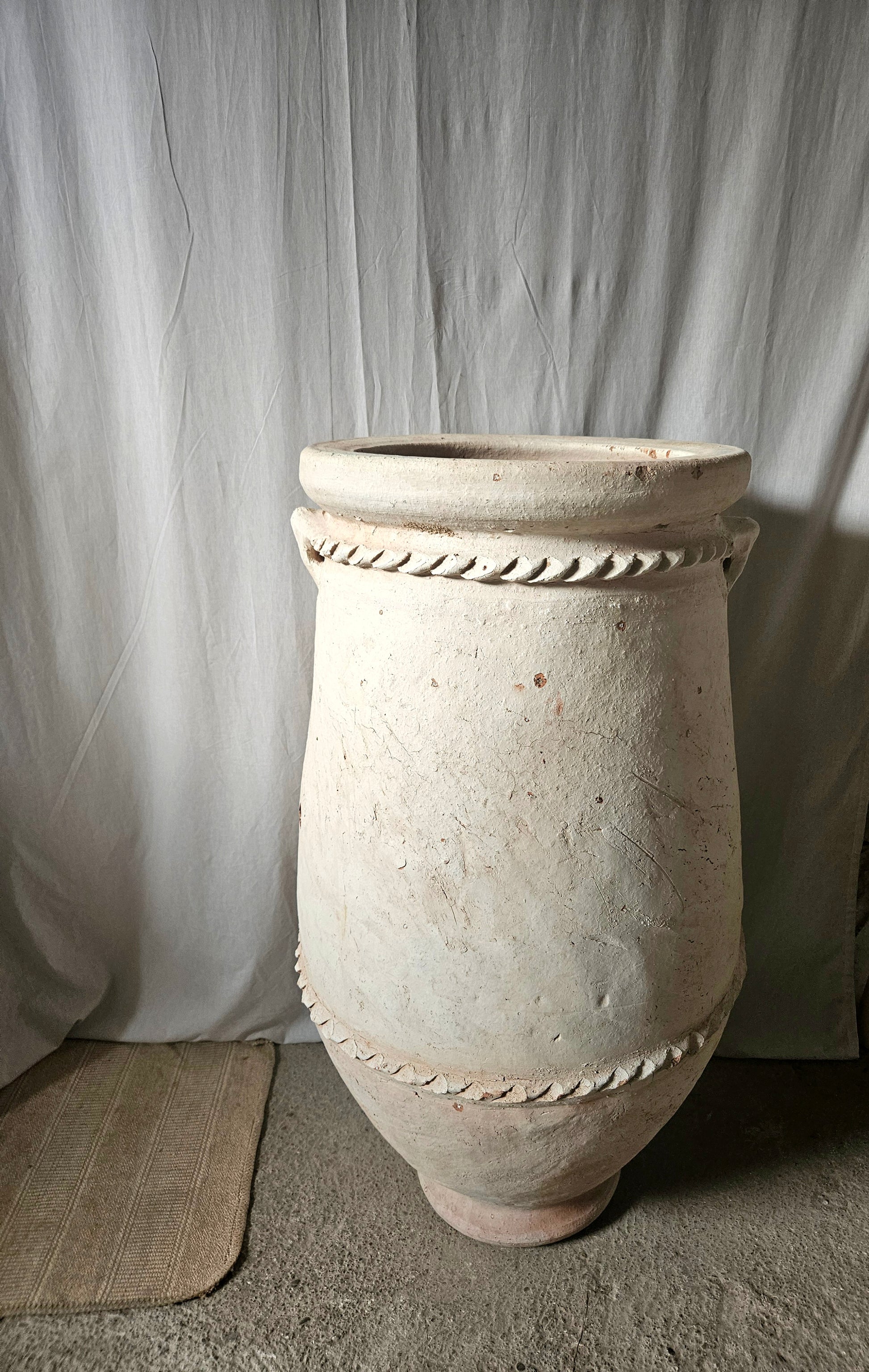 La jarre Berbère est fabriquée à base de terre cuite blanchie à la chaux.