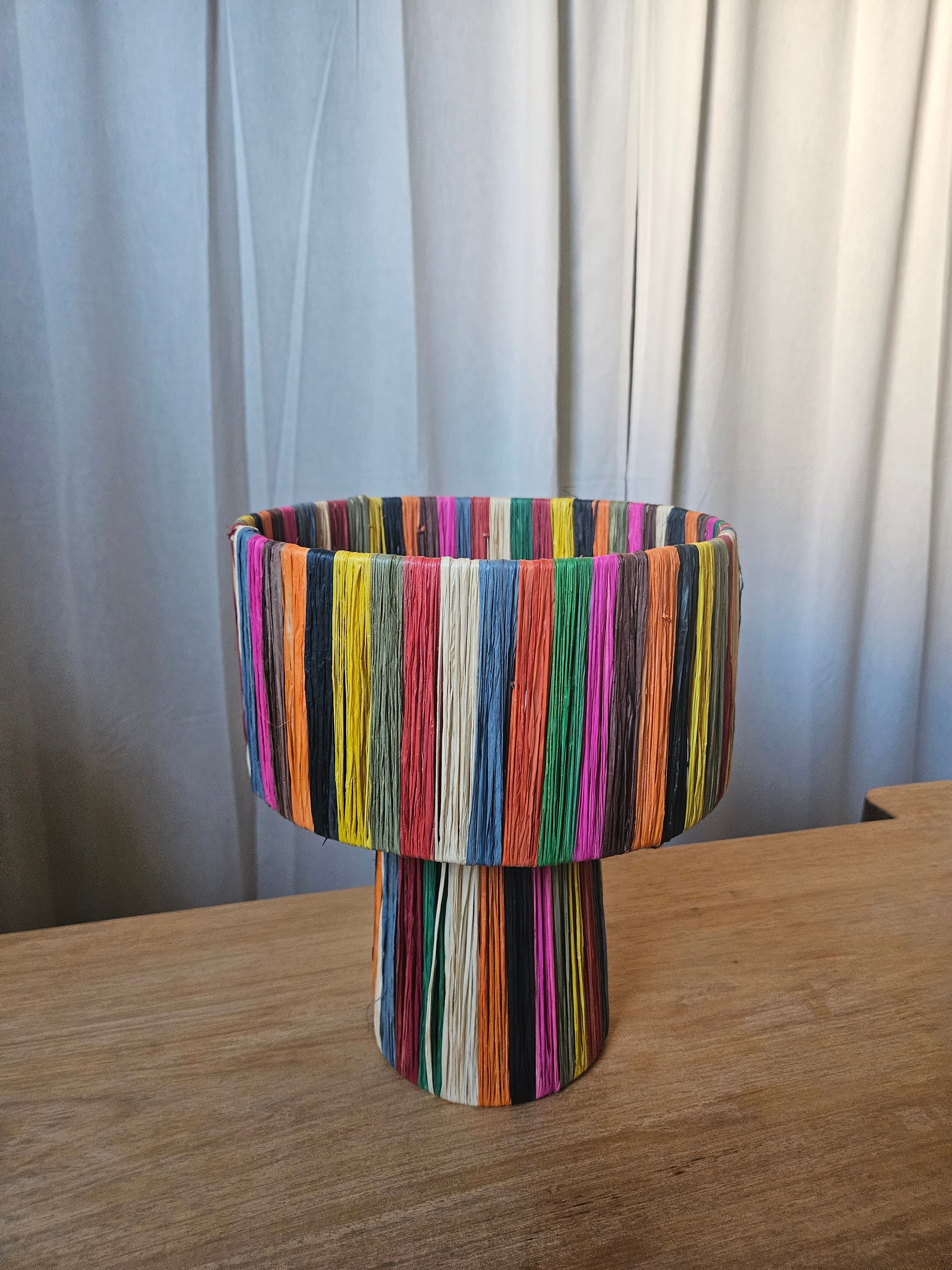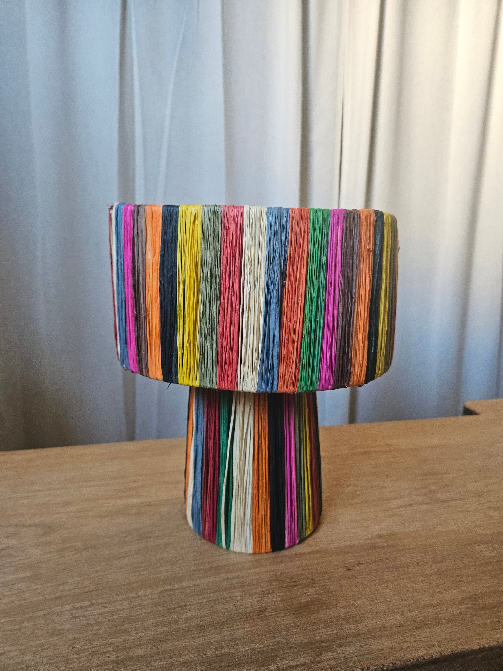 Lampe à poser en raphia multicolore - Lampe coloré faite main
