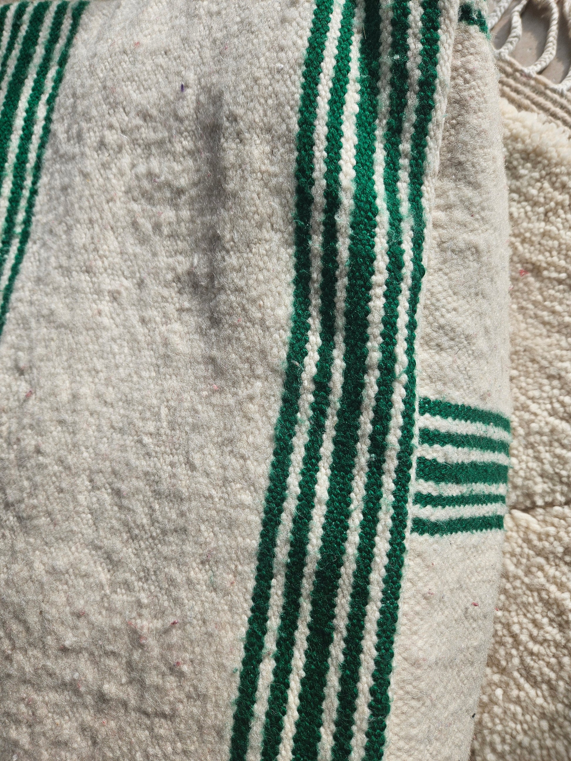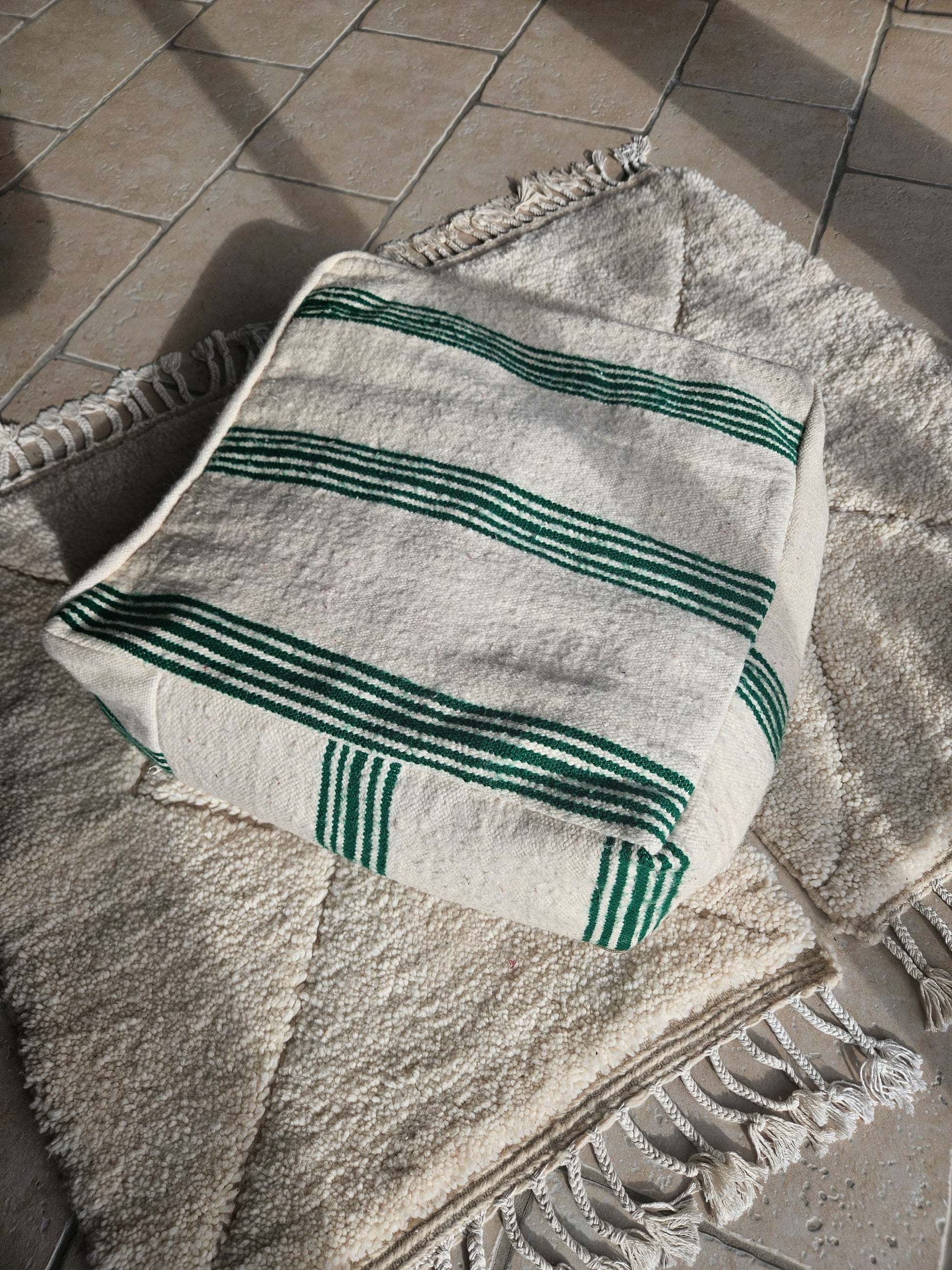 Magnifique pouf berbère rayures vert & blanc, housse de pouf vert, pouf marocain terrasse