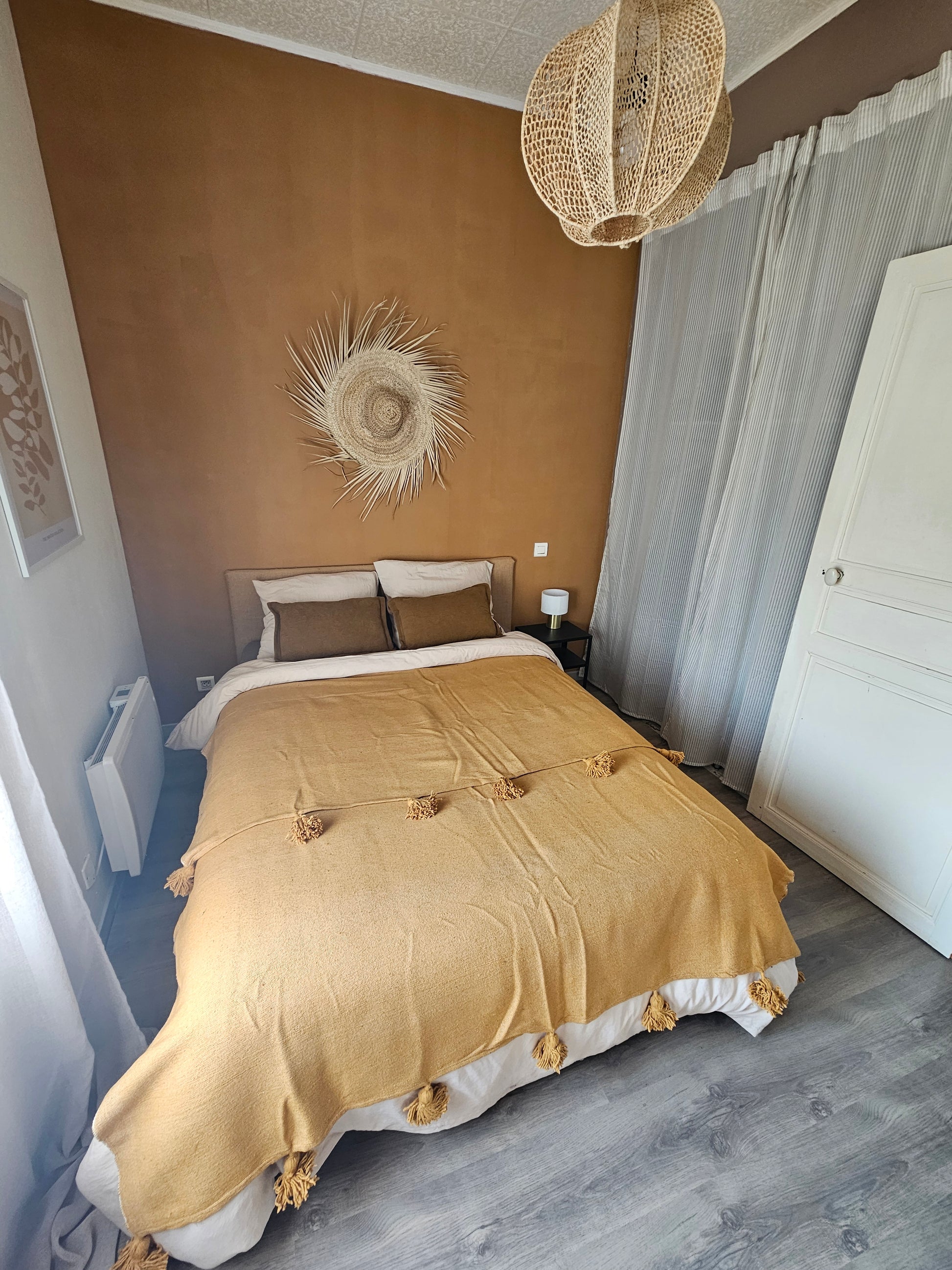 Plaid a pompoms marocain en coton Ocre - Jette de canapé