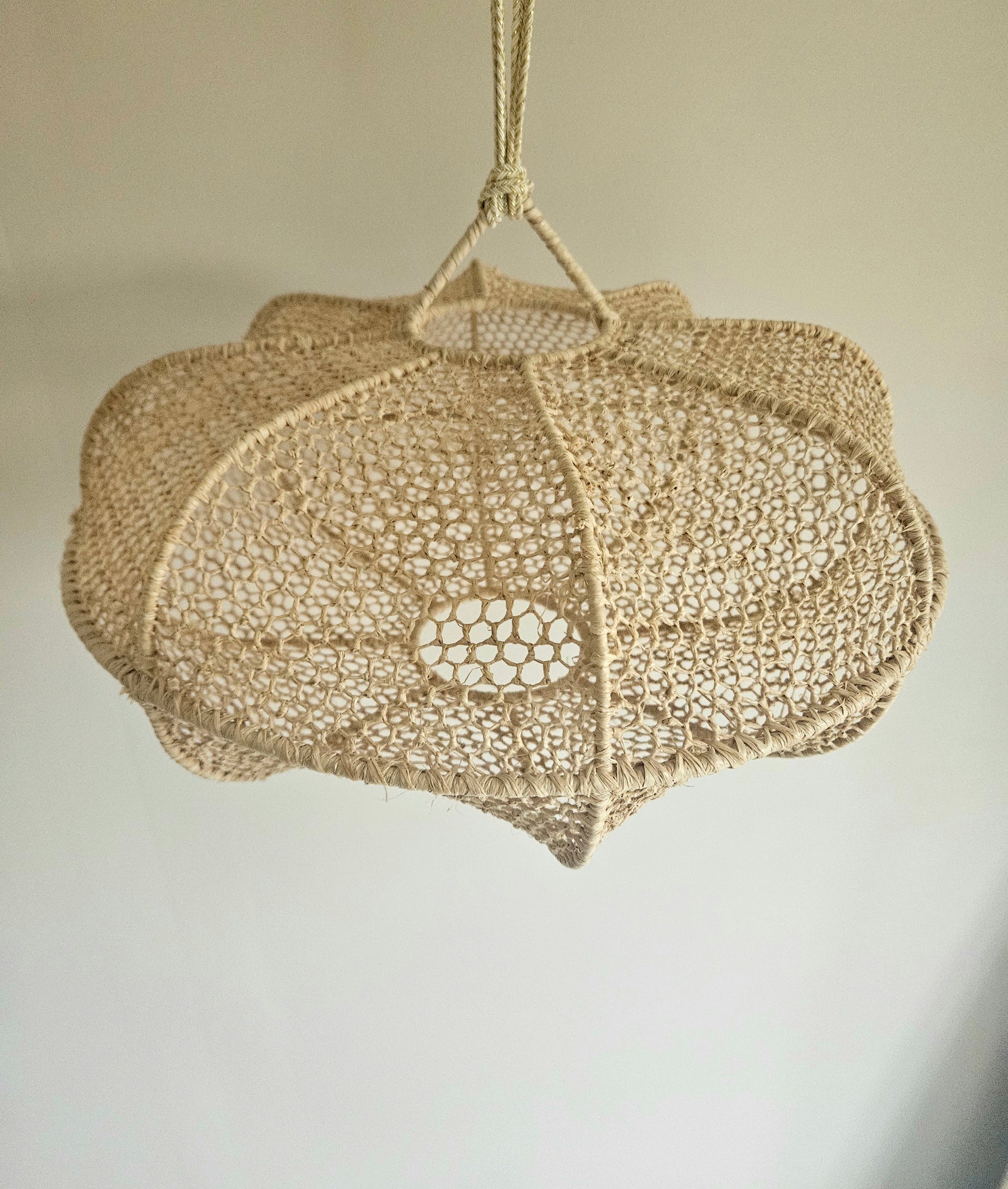 Suspension en raphia arrondie, nid d'abeille, luminaire deco, abat-jour en raphia