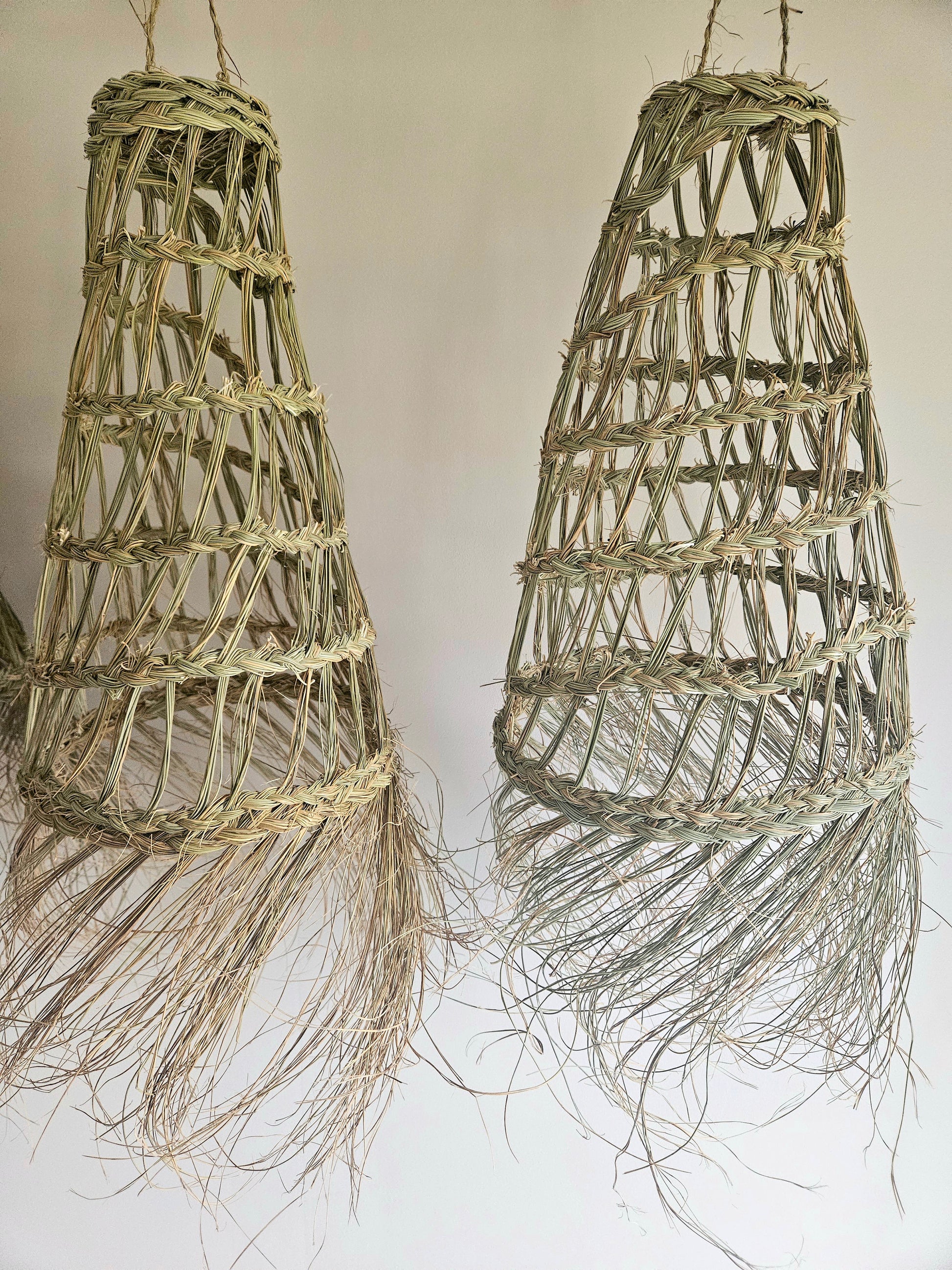 * Étant fabriqué à la main, chaque pièce est unique, il peut y avoir de légères variations en centimètres. Quand elles sont neuve, elle sont de couleur verte, avec le temps elles sèchent et deviennent beige.