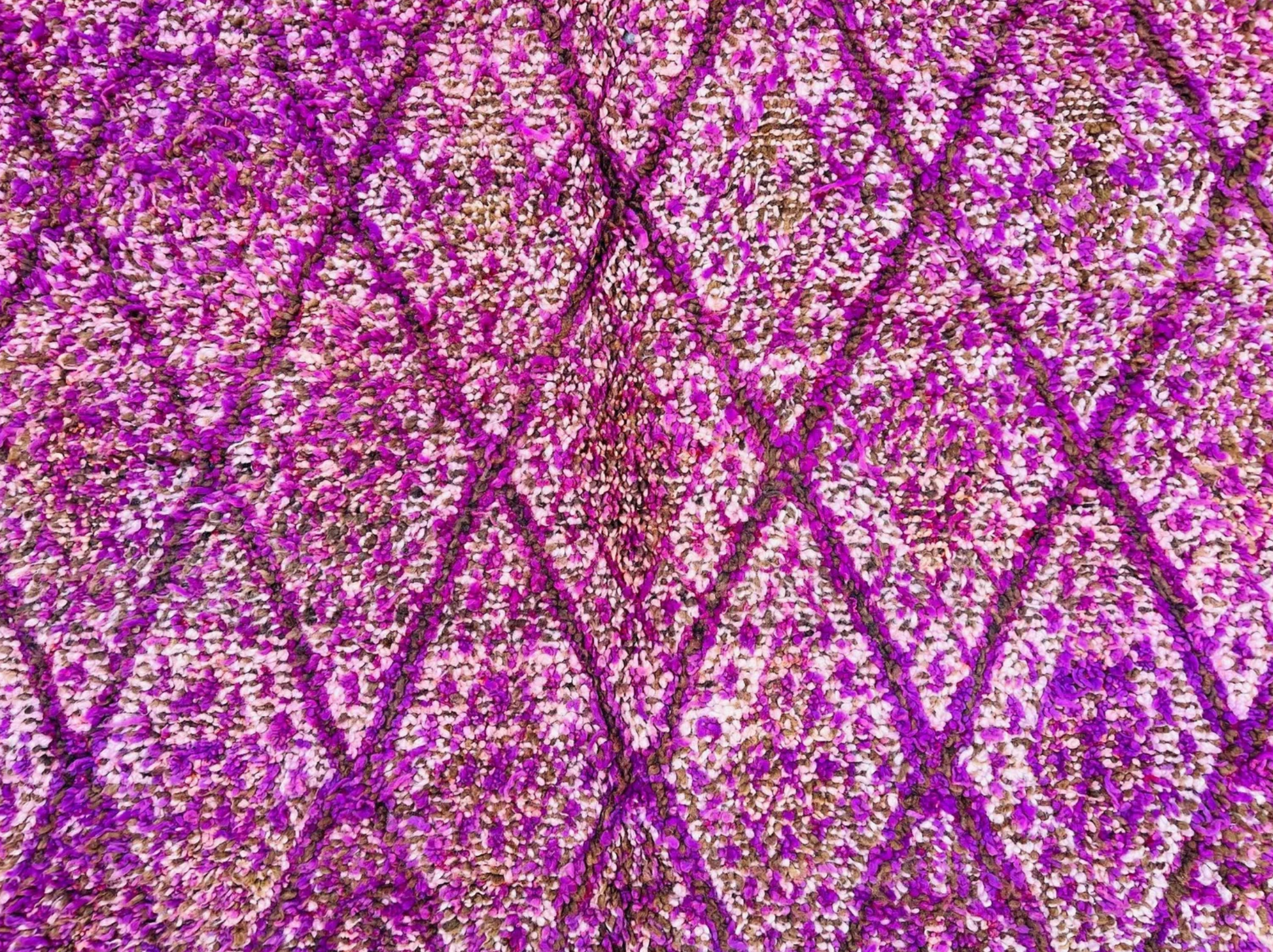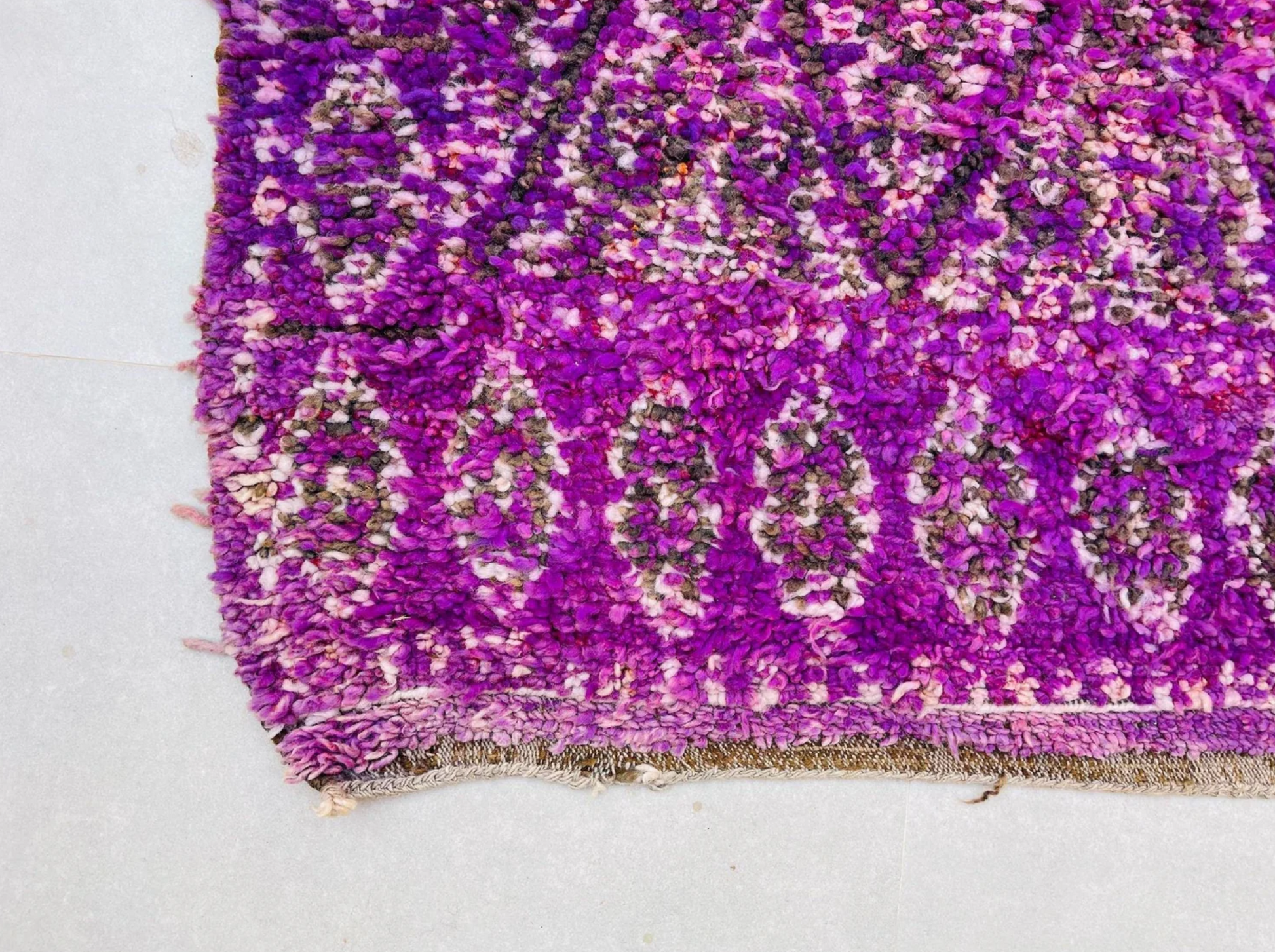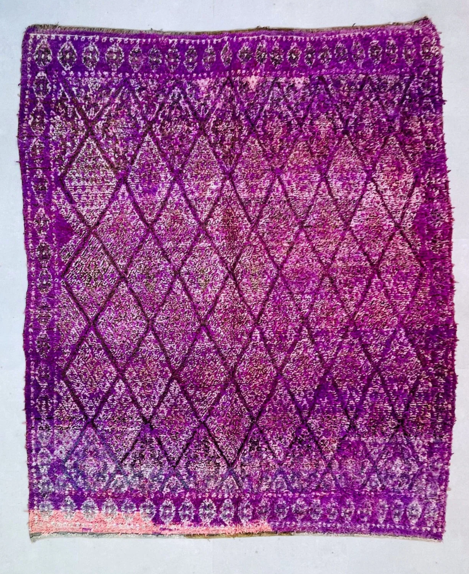 Magnifique tapis marocain vintage aux tons violets riches et aux motifs complexes en losanges. Parfait pour une touche audacieuse et unique à n'importe quelle pièce ! 💜