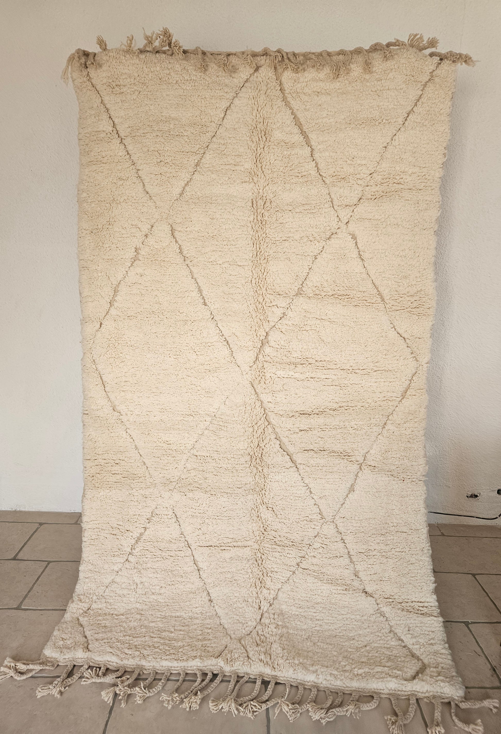 Tapis Beni Ouarain Ecru en laine naturelle, tissé a la main dans l'Atlas Marocain